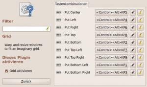 Während meiner Suche stieß ich auf das Compiz-Fusion Grid Plugin welches grundlegende Tiling Funktionen bietet. Um die Installation zu vereinfachen kann man auf gnome-look.org eine Sammlung von Compiz Plugins (deb Paket) herunterladen, welche das entsprechende Plugin enthält. So lässt sich das ganze später auch wieder einfacher entfernen 😉